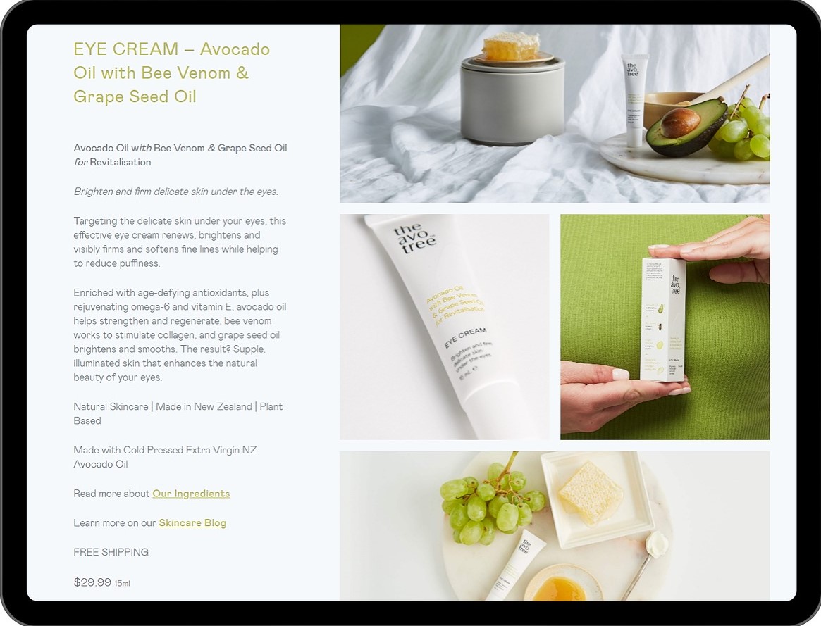 When The Avo Tree broadened their offering to include skincare and teas, they needed help telling everyone that these funky little fruits aren’t just good to eat; you can drink 'em and put 'em on your skin, too. So I revamped their brand story and tone of voice to reflect their new market position.